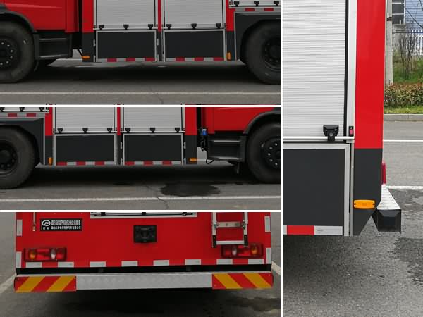 | 罐體總容積:5.965立方米,水罐容積:4.2立方米,水罐尺寸:2295×1420×1350mm,泡沫液罐容積:1.765立方米,泡沫液罐尺寸:965×1420×1350mm。整體式側防護結構,后防護裝置材料:Q235,截面尺寸:120×120mm,與車輛連接方式:螺栓連接,后防護離地高度:440mm。ABS生產廠家;東科克諾爾商用車制動系統(tǒng)(十堰)有限公司, 浙江萬安科技股份有限公司,型號:3631010-C2000, VIE ABS-Ⅱ。主要專用裝置有消防泵、消防炮。 | |||