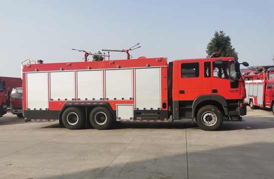 干粉消防車采用上汽依維柯紅巖CQ5356TXFHTVG474D消防車底盤改裝,原裝雙排駕駛室,液壓翻轉(zhuǎn),依維柯F2CCE611AL發(fā)動機(jī),390馬力,罐體容積6立方米(2 個3立方米干粉罐);干粉罐材質(zhì)為優(yōu)質(zhì)碳鋼,厚度為6mm,與底盤采用彈性連接,載干粉6立方米,車頂安裝成都威斯特消防機(jī)械有限公司生產(chǎn)車用PF30干粉炮。質(zhì)火災(zāi)。 |
