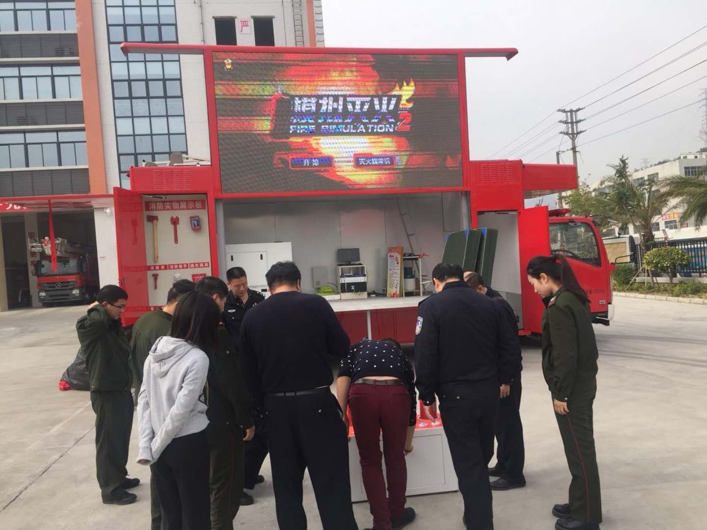 采用P6 LED全彩屏,尺寸3840mm*1920mm,搭配17寸車載顯示器、工業(yè)**機(jī)(內(nèi)存8G,硬盤1000G,鍵盤鼠標(biāo),U盤),視頻同步**系統(tǒng),360W功率放大器,無(wú)線話筒,車載專用高品質(zhì)音響*2臺(tái)可以播放存儲(chǔ)的典型案例、防火、初火撲救、地逃生自救等消防宣傳視頻,配合使用模擬滅火**演練系統(tǒng) |