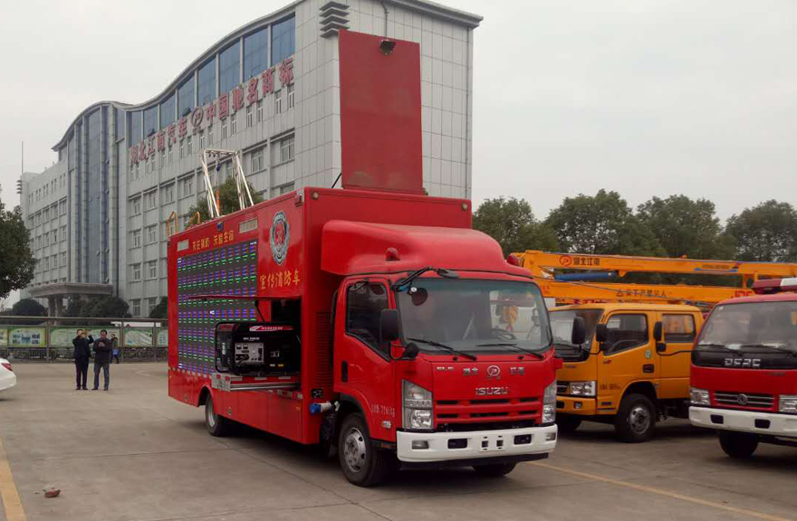 國(guó)六慶鈴消防宣傳車采用慶鈴QL1110ANMAY 底盤改裝,五十鈴4HK1-TCG61發(fā)動(dòng)機(jī),190馬力,車體側(cè)后方安裝一個(gè)廂體門,車體頂部安裝一個(gè)廂體門,配合煙霧逃生JH通道使用;車體尾部設(shè)置爬梯,供消防員上下車頂;車體前部設(shè)有抽拉式8千瓦發(fā)電機(jī)組。側(cè)面安裝P6 LED全彩屏3840mm*1920mm;車廂內(nèi)安裝**系統(tǒng):臺(tái)式電腦,音柱: 2只60W/只 功放:360W;車廂內(nèi)部安裝煙霧逃生通道演練系統(tǒng),爬梯,上部安裝樓層結(jié)繩逃生體驗(yàn)功能;另側(cè)面安裝模擬報(bào)**訓(xùn)練系統(tǒng)、消防安全標(biāo)識(shí)認(rèn)知系統(tǒng)、電氣火災(zāi)成因試驗(yàn)系統(tǒng)、建筑消防**模擬系統(tǒng)、火災(zāi)隱患查找系統(tǒng)。 |