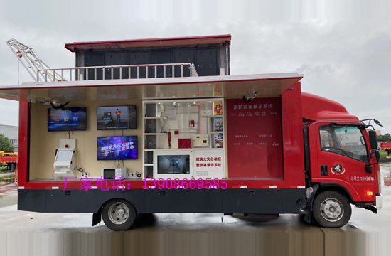 國(guó)六慶鈴消防宣傳車采用慶鈴QL1110ANMAY 底盤改裝,五十鈴4HK1-TCG61發(fā)動(dòng)機(jī),190馬力,五十鈴MLD六檔變速器,空調(diào),帶方向助力,前橋4噸,后橋7噸,帶ABS,斷氣剎,駕駛室可翻轉(zhuǎn),車體側(cè)后方安裝一個(gè)廂體門,車體頂部安裝一個(gè)廂體門,配合煙霧逃生JH通道使用;車體尾部設(shè)置爬梯,供消防員上下車頂;車體前部設(shè)有抽拉式16千瓦超靜音發(fā)電機(jī)組。側(cè)面安裝P5防震防水高清彩色LED顯示屏;車廂內(nèi)安裝**系統(tǒng):臺(tái)式電腦,配備不小于 150 瓦放大器及音箱;車廂內(nèi)部安裝煙霧逃生通道演練系統(tǒng),爬梯,上部安裝樓層結(jié)繩逃生體驗(yàn)功能;另側(cè)面安裝模擬報(bào)**訓(xùn)練系統(tǒng)、消防安全標(biāo)識(shí)認(rèn)知系統(tǒng)、電氣火災(zāi)成因試驗(yàn)系統(tǒng)、建筑消防**模擬系統(tǒng)、火災(zāi)隱患查找系統(tǒng)。 |