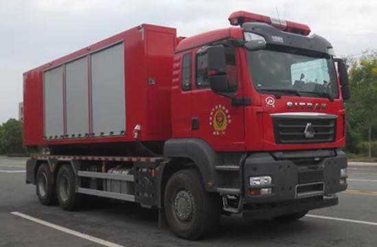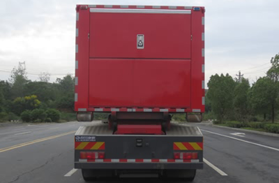 車廂可卸式器材消防車采用ZZ5356V524ME1底盤改裝,重汽MC11.40-50發(fā)動(dòng)機(jī),405馬力,車廂可卸,主要專用裝置有消防器材。 |
