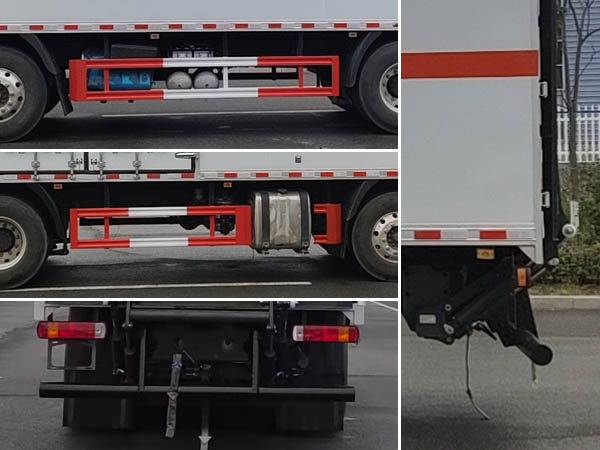 | 車廂頂部封閉不可開啟;EBS型號:EBS3,EBS系統(tǒng)生產(chǎn)廠家:威伯科汽車**系統(tǒng)(**)有限公司;安裝有限速裝置;限速裝置限速(km/h):79;安裝有具有衛(wèi)星定位功能的行駛記錄儀;僅采用底盤軸距1900+4500+1350mm;選裝廂體開門型式及位置;選裝瓦楞板結(jié)構(gòu)廂體;選裝后部雙拉桿結(jié)構(gòu);選裝不帶起重尾板,尾板質(zhì)量為550kg;起重尾板收起狀態(tài)水平長度為290mm;該車選裝ETC車載裝置;發(fā)動機/油耗申報值(L/100km)對應(yīng)關(guān)系為:CA6DK1-32E6/37.65,CA6DL6-36E6/38.23;整備質(zhì)量(kg)/額定載質(zhì)量(kg)/準(zhǔn)乘人數(shù)(人)對應(yīng)關(guān)系為:11600/20270/2,11600/20205/3,12000/19870/2,12000/19805/3,12500/19370/2,12500/19305/3;側(cè)面防護及后下部防護裝置材料材質(zhì):Q235,側(cè)面防護連接方式:焊接連接;后下部防護裝置連接方式:焊接加螺栓連接,斷面尺寸(直徑):Φ120mm,離地高度:490mm;選裝不帶尾板時,后下部防護裝置斷面尺寸(寬×高):60×120(mm),離地高度:490mm;運輸**容器(瓶)包裝的貨物;危險貨物類項號:3;該車為危險品貨物運輸車;僅采用前輪盤式制動器,前置排氣管,子午線輪胎;后軸為空氣懸架;轉(zhuǎn)向輪安裝爆胎應(yīng)急防護裝置; | |||