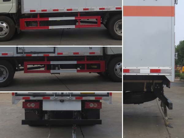 | ABS型號(hào):ABS-VI.E,ABS-E,YF8;ABS生產(chǎn)企業(yè):廣州瑞立科密汽車電子股份有限公司,威伯科汽車**系統(tǒng)(**)有限公司,武漢元豐汽車電控系統(tǒng)有限公司;安裝有限速裝置;限速裝置限速(km/h):80;安裝有具有衛(wèi)星定位功能的行駛記錄儀;選裝描述:隨底盤選裝駕駛室;廂體側(cè)面選裝開門型式及位置,選裝不帶側(cè)開門,選裝瓦楞板結(jié)構(gòu);選裝起重尾板(收起狀態(tài)水平長(zhǎng)度為280mm),尾板質(zhì)量為350kg;選裝不同廠家尾板以及尾板樣式;該車選裝ETC車載裝置;發(fā)動(dòng)機(jī)/油耗值(L/100km)對(duì)應(yīng)關(guān)系為:Q23-115C60/11.4,Q23-115E60/11.4,Q23-132E60/11.4;所用材料材質(zhì)、連接方式以及后部防護(hù)裝置的主要尺寸參數(shù)(斷面尺寸和離地高度):側(cè)面防護(hù)及后下部防護(hù)裝置材料材質(zhì):Q235,連接方式:焊接加螺栓連接;后下部防護(hù)裝置斷面尺寸(寬×高):40×100(mm),離地高度:340mm;選裝起重尾板時(shí),安裝圓形后防護(hù),后下部防護(hù)裝置斷面尺寸(直徑):110(mm),離地高度:400mm.車廂頂部封閉且不可開啟;運(yùn)輸**容器(瓶)包裝的貨物;危險(xiǎn)貨物類項(xiàng)號(hào):3;其他說明:該車為危險(xiǎn)品貨物運(yùn)輸車;僅采用前輪盤式制動(dòng)器,前置排氣管,子午線輪胎;轉(zhuǎn)向輪安裝爆胎應(yīng)急防護(hù)裝置; | |||