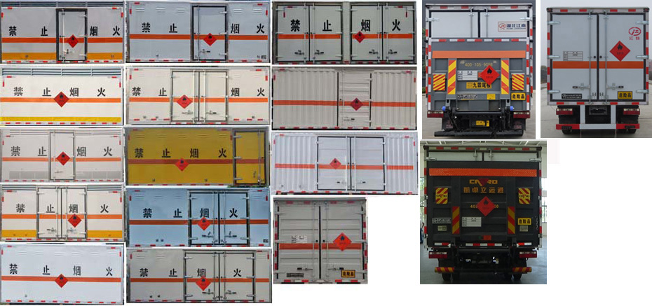 | 車廂頂部封閉不可開啟;ABS防抱死制動系統(tǒng)生產(chǎn)廠家/型號:1.廣州瑞立科密汽車電子股份有限公司/CM4XL-4S/4M;2.浙江萬安科技股份有限公司/VIE ABS-II;安裝有限速裝置;限速裝置限速(km/h):80;安裝有具有衛(wèi)星定位功能的行駛記錄儀;隨底盤選裝駕駛室,選裝燃油箱,電瓶,尿素罐,儲氣筒左右安裝位置;選裝廂體開門型式及位置,選裝不帶側(cè)開門;選裝瓦楞板結(jié)構(gòu)廂體,選裝后部結(jié)構(gòu);起重尾板為選裝件(收起狀態(tài)水平長度為280mm),尾板質(zhì)量為350kg;選裝不同廠家的尾板以及尾板樣式;僅采用底盤3300mm軸距;該車選裝ETC車載裝置;發(fā)動機(jī)/油耗申報值(L/100km)對應(yīng)關(guān)系為:F2.8NS6B156/11.2,CA4DB1-13E6/11.0,WP2.3NQ130E61/11.2,WP2.3NQ120E61/11.2,H20-120E60/10.09;運(yùn)輸**容器(瓶)包裝的介質(zhì)類項(xiàng)號為:3;該車為危險品貨物運(yùn)輸車;僅采用前輪盤式制動器,前置排氣管,子午線輪胎;轉(zhuǎn)向輪安裝爆胎應(yīng)急防護(hù)裝置;側(cè)面防護(hù)及后下部防護(hù)裝置材料材質(zhì):Q235,側(cè)面防護(hù)連接方式:焊接連接;后下部防護(hù)裝置連接方式:焊接加螺栓連接,斷面尺寸(直徑):Φ110(mm),離地高度:450mm;選裝不帶起重尾板時,后下部防護(hù)裝置連接方式:焊接連接,斷面尺寸(寬×高):50×100(mm),離地高度:450mm. | |||