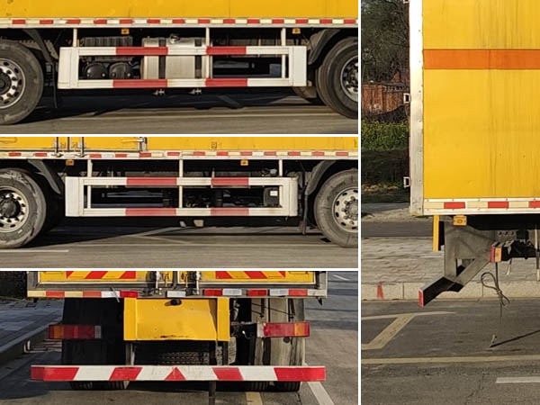 | 廂體頂部封閉,不可開(kāi)啟;隨底盤選裝駕駛室,隨底盤選裝蓄電池及儲(chǔ)氣筒可選裝右置;選裝廂體開(kāi)門型式及位置;選裝瓦楞板結(jié)構(gòu)廂體;選裝后部雙拉桿結(jié)構(gòu);選裝起重尾板,尾板質(zhì)量為550kg;起重尾板收起狀態(tài)水平長(zhǎng)度為290mm;該車用于運(yùn)輸具有**容器(瓶)包裝的危險(xiǎn)貨物類項(xiàng)號(hào)為:9;僅采用前輪盤式制動(dòng)器,前置排氣管,子午線輪胎,限速裝置的底盤,限速80km/h;后軸為空氣懸架;轉(zhuǎn)向輪安裝爆胎應(yīng)急防護(hù)裝置;該車選裝ETC車載裝置;發(fā)動(dòng)機(jī)/油耗值(L/100km)對(duì)應(yīng)關(guān)系為:DDi75E350-60/38.1,L9NS6B400/38.2;該車安裝具有衛(wèi)星定位功能的行駛記錄儀;EBS型號(hào)/生產(chǎn)廠家:EBS5/東科克諾爾商用車制動(dòng)系統(tǒng)(十堰)有限公司;側(cè)面防護(hù)及后下部防護(hù)裝置材料材質(zhì):Q235,連接方式:焊接連接;后下部防護(hù)裝置斷面尺寸(寬×高):60×120(mm),離地高度:495mm;選裝起重尾板時(shí),后防護(hù)結(jié)構(gòu)連接方式:焊接加螺栓連接,斷面尺寸(直徑):Φ120mm,離地高度:460mm. | |||