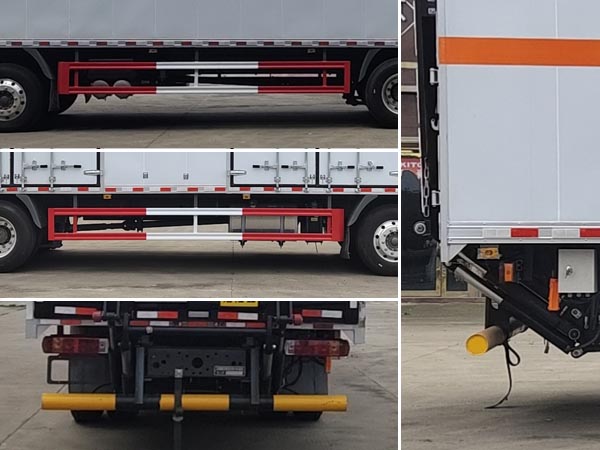 | 車廂頂部封閉不可開啟;EBS系統(tǒng)**器生產(chǎn)企業(yè)/型號為威伯科(上海)管理有限公司/EBS3;安裝有限速裝置,限速裝置限速(km/h):80;安裝有具有衛(wèi)星定位功能的行駛記錄儀;隨底盤選裝駕駛室;選裝廂體開門型式及位置;選裝瓦楞板結(jié)構(gòu)廂體;選裝后部結(jié)構(gòu);起重尾板為選裝件(收起狀態(tài)水平長度為290mm),尾板質(zhì)量為550kg;選裝不同廠家尾板以及尾板外觀;該車選裝ETC車載裝置;發(fā)動機/油耗申報值(L/100km)對應(yīng)關(guān)系為:MC07.25-60/29.42,MC07.31-60/29.42;側(cè)面防護及后下部防護裝置材料材質(zhì):Q235,側(cè)面防護連接方式:焊接連接;后下部防護裝置連接方式:焊接加螺栓連接,斷面尺寸(直徑):Φ120(mm),離地高度:460mm;不帶起重尾板時,后防護連接方式:焊接連接;后下部防護裝置斷面尺寸(寬×高):60×120(mm),離地高度:450mm;運輸**容器(瓶)包裝的介質(zhì)類項號為:9;該車為危險品貨物運輸車;僅采用前輪盤式制動器,前置排氣管,子午線輪胎;轉(zhuǎn)向輪安裝爆胎應(yīng)急防護裝置;后軸采用空氣懸架。 | |||