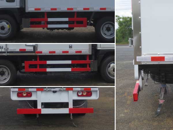 | 廂體頂部封閉,不可開啟;隨底盤選裝駕駛室;僅采用底盤2650mm軸距;廂體選裝瓦楞板結(jié)構(gòu),廂體側(cè)面選裝開門型式及位置或不帶側(cè)開門,選裝百葉窗;運(yùn)輸介質(zhì)類項(xiàng)號(hào)2.1,2.2;該車為危險(xiǎn)品貨物運(yùn)輸車;僅采用前輪盤式制動(dòng)器,前置排氣管,子午線輪胎,限速裝置的底盤,限速80km/h;轉(zhuǎn)向輪安裝爆胎應(yīng)急防護(hù)裝置;發(fā)動(dòng)機(jī)Q23-95E60對(duì)應(yīng)油耗申報(bào)值為11.4L/100km;該車安裝具有衛(wèi)星定位功能的行駛記錄儀;ABS**器型號(hào)/生產(chǎn)廠家:YF8/武漢元豐汽車電控系統(tǒng)有限公司;側(cè)面防護(hù)及后下部防護(hù)裝置材料材質(zhì):Q235,連接方式:焊接加螺栓連接;后下部防護(hù)裝置斷面尺寸(寬×高):50×100(mm),離地高度:360mm. | |||