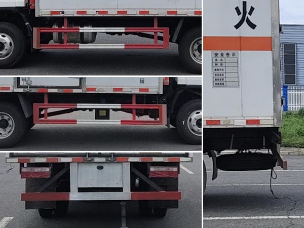 | 車(chē)廂頂部封閉不可開(kāi)啟;ABS防抱死制動(dòng)系統(tǒng)生產(chǎn)廠家/型號(hào):1.廣州瑞立科密汽車(chē)電子股份有限公司/CM4XL-4S/4M;2.浙江萬(wàn)安科技股份有限公司/VIE ABS-II;安裝有限速裝置,限速裝置限速(km/h):80;安裝有具有衛(wèi)星定位功能的行駛記錄儀;隨底盤(pán)選裝駕駛室,隨底盤(pán)選裝燃油箱,電瓶,尿素罐,儲(chǔ)氣筒左右安裝位置;選裝廂體開(kāi)門(mén)型式及位置;選裝瓦楞板結(jié)構(gòu)廂體;選裝起重尾板(收起狀態(tài)水平長(zhǎng)度為280mm),尾板質(zhì)量為350kg;選裝不同廠家尾板以及尾板外觀;該車(chē)選裝ETC車(chē)載裝置;發(fā)動(dòng)機(jī)/油耗申報(bào)值(L/100km)對(duì)應(yīng)關(guān)系為:WP2.3NQ120E61/15.2,WP2.3NQ130E61/15.2,CA4DB1-12E6/13.38,CA4DB1-13E6/13.38;側(cè)面防護(hù)及后下部防護(hù)裝置材料材質(zhì):Q235,側(cè)面防護(hù)連接方式:焊接連接;后下部防護(hù)裝置連接方式:焊接加螺栓連接,斷面尺寸(寬×高):45×100(mm),離地高度:495mm;選裝起重尾板時(shí),后防護(hù)連接方式:焊接加螺栓連接;斷面尺寸(直徑):Φ110(mm),離地高度:460mm;運(yùn)輸**容器(瓶)包裝的介質(zhì)類(lèi)項(xiàng)號(hào)為:2.1,2.2;該車(chē)為危險(xiǎn)品貨物運(yùn)輸車(chē);僅采用前輪盤(pán)式制動(dòng)器,前置排氣管,子午線輪胎;轉(zhuǎn)向輪安裝爆胎應(yīng)急防護(hù)裝置; | |||