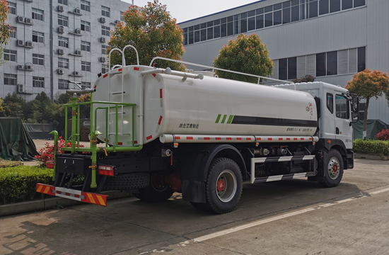 國(guó)六東風(fēng)12噸灑水車采用東風(fēng)EQ1185LJ9CDE底盤改裝,平頭單排帶臥駕駛室,東風(fēng)康明斯B6.2NS6B210發(fā)動(dòng)機(jī),210馬力,國(guó)六排放標(biāo)準(zhǔn),罐體容積12立方米,前沖、后灑、側(cè)噴、后置工作平臺(tái),帶綠化灑水炮,可調(diào)節(jié)成柱狀和霧狀,配備大功率專用杭州威龍灑水泵,帶消防接頭,自流閥,罐體采用4毫米優(yōu)質(zhì)碳鋼制作,帶4米長(zhǎng)吸水管2根,具有自吸自排功能。 |
