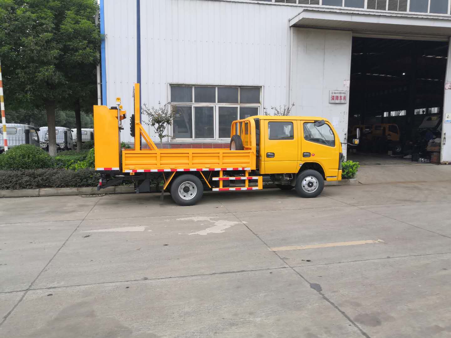 國六國六藍(lán)牌防撞緩沖車采用東風(fēng)EQ1045DJ3CDF底盤改裝,平頭雙排駕駛室,全柴Q23-115E60發(fā)動機(jī),115馬力,國六排放標(biāo)準(zhǔn),主要專用裝置為防撞緩沖裝置,用于道路施工過程中的防撞緩沖作業(yè). |